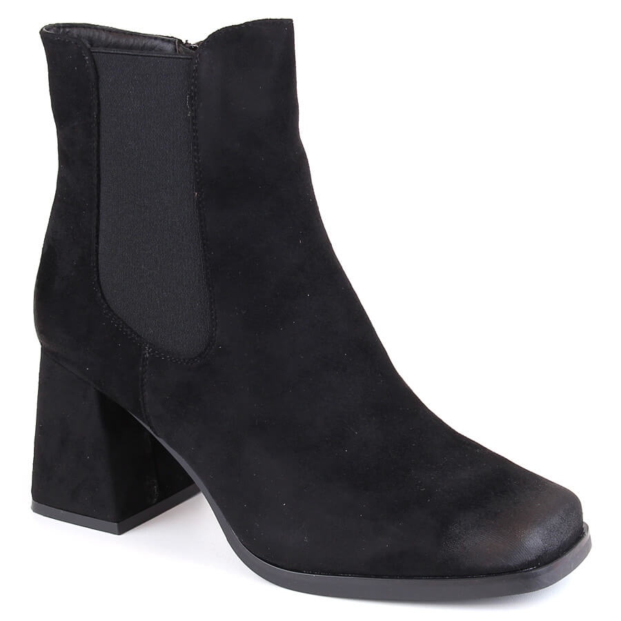 Suede Boots Potocki SZ12183 prijedlog je žena koje cijene stil i udobnost. Napravljeni od ekološke kože od antilop u klasičnoj, crnoj boji (zajedno s potplatom), kombiniraju moderan, kvadratni nožni prst sa 7,5 cm posta - savršeno za svakodnevne i sve formalne stilizacije.