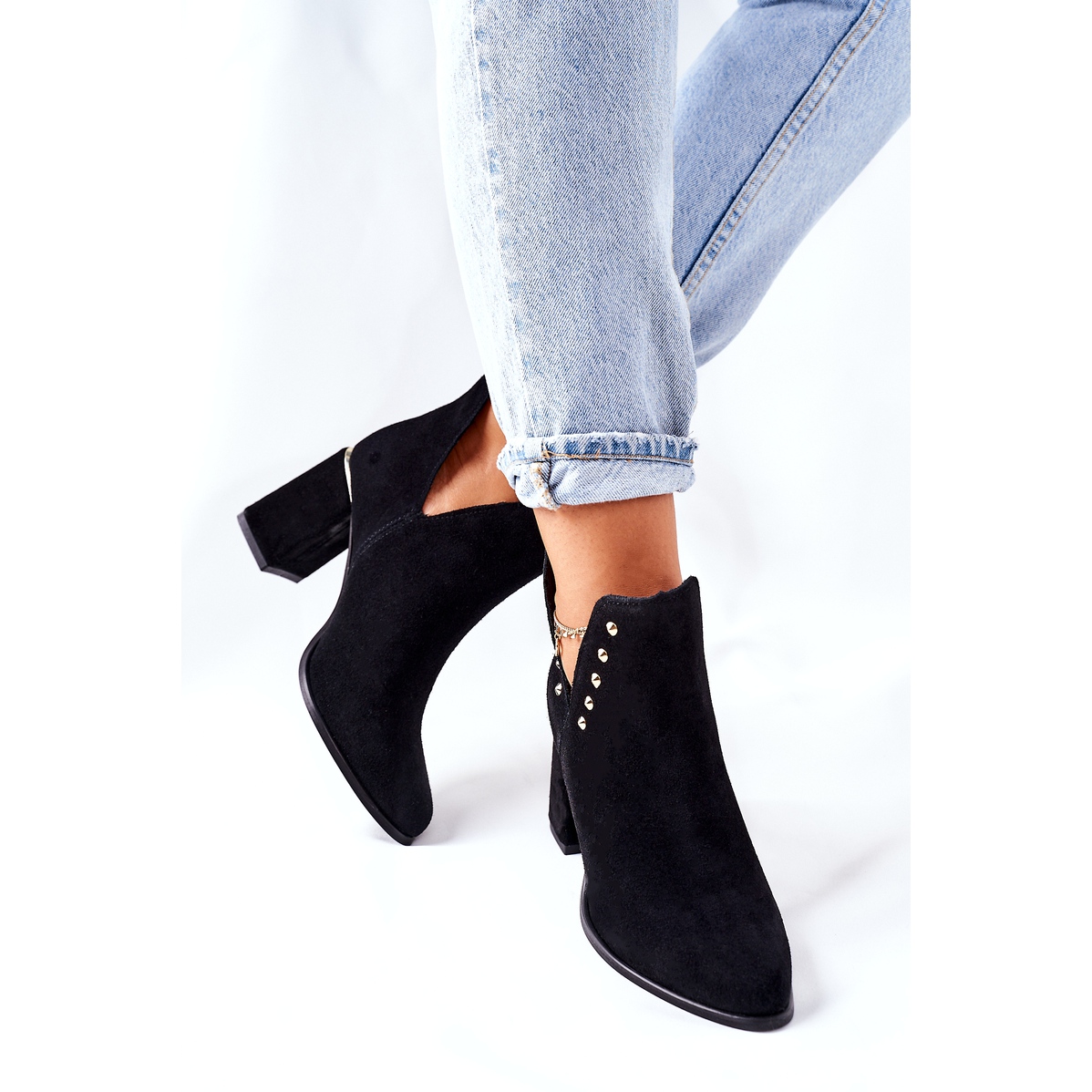 Ženske gležnjače od brušene kože s izrezima i kamenčićima Lewski crne 3075 crna