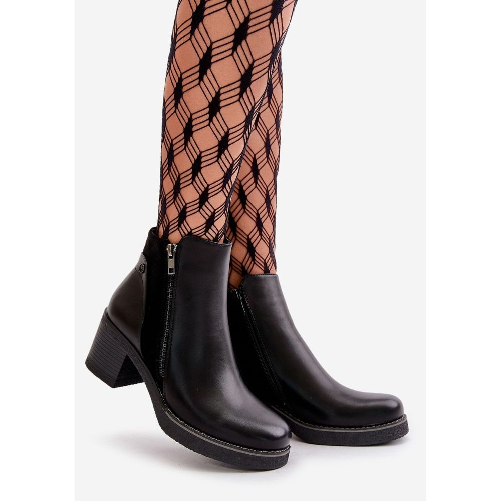 Inna marka Ženske gležnjače od eko kože na visoku petu tople crne Revianna crno