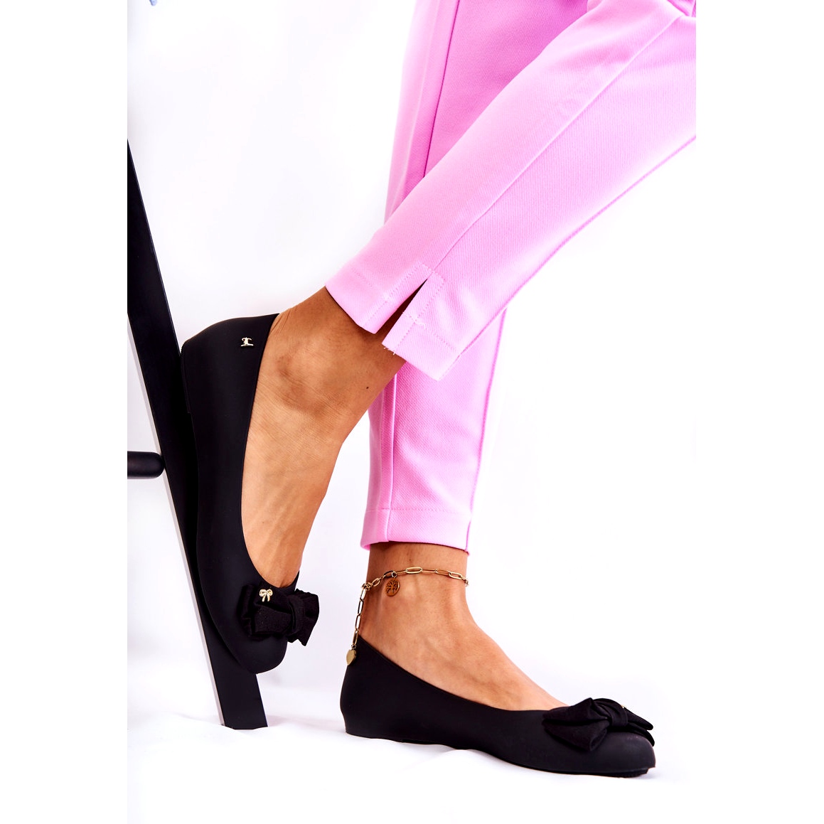 Pojedinosti: PH1 Ženske gumene balerinke s mašnom Black Fergie crna