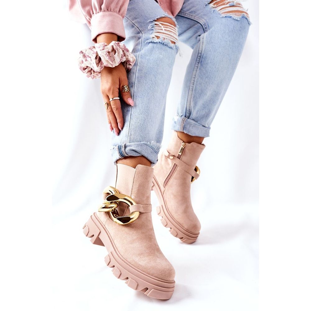 S. barski ženske izolirane čizme Chelsea - bež s odvojivim lancem