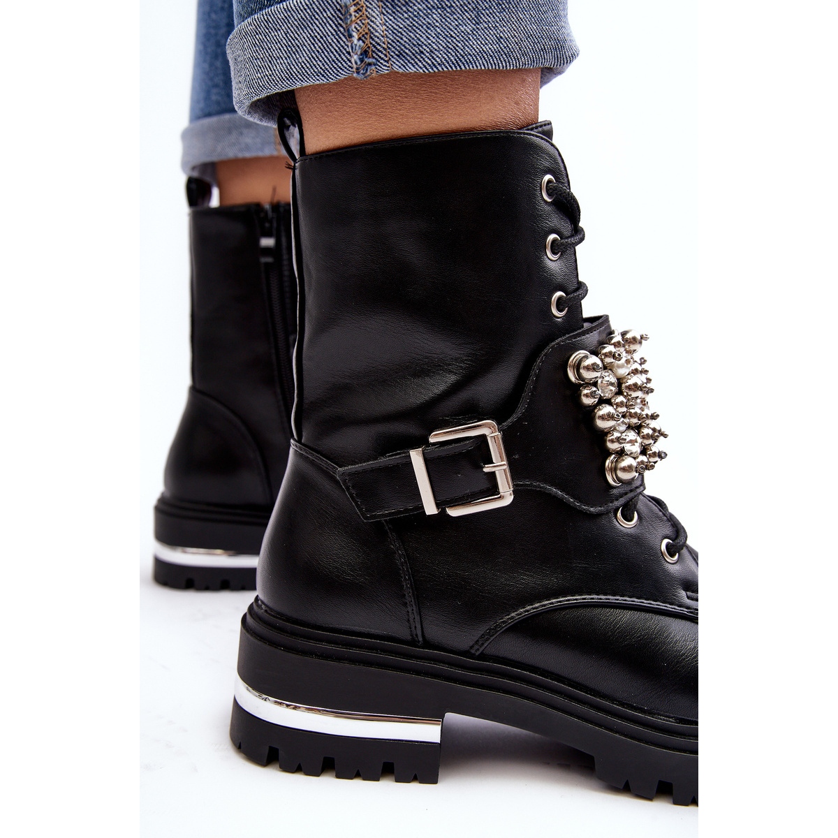 Pojedinosti: Ženske izolirane radne gležnjače ukrašene crnom lećom crna
