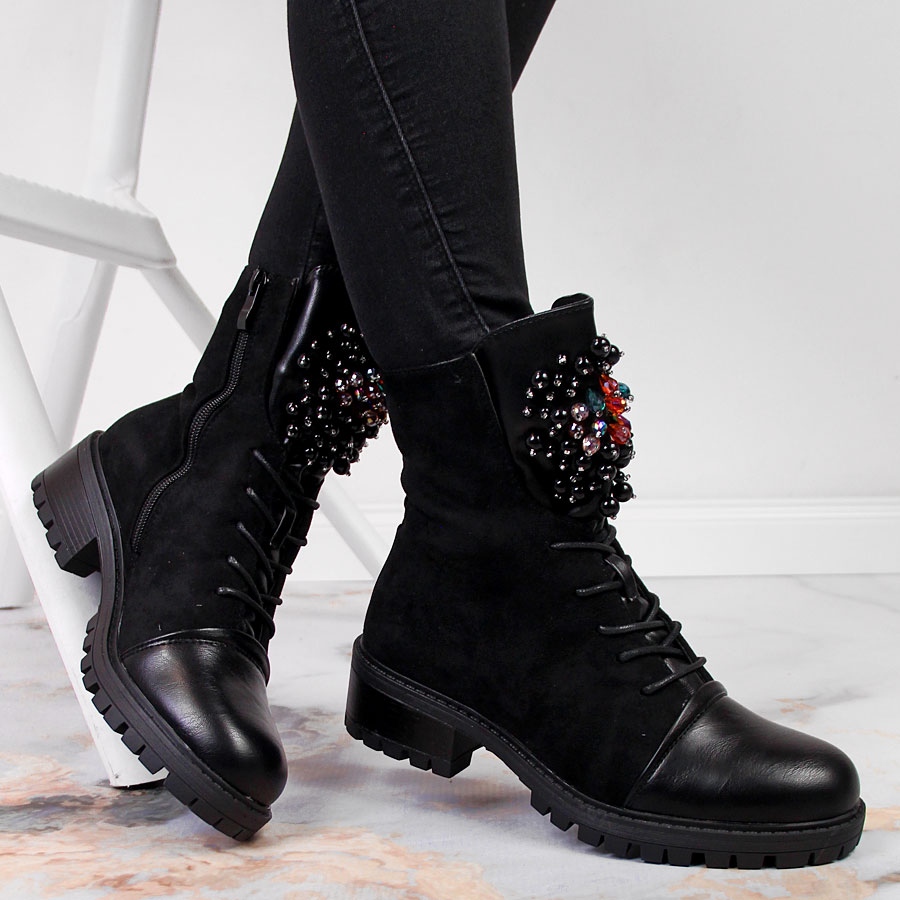 Pojedinosti: Ženske izolirane radničke čizme s perlama, crne Jezzi RMR2071-15 crna