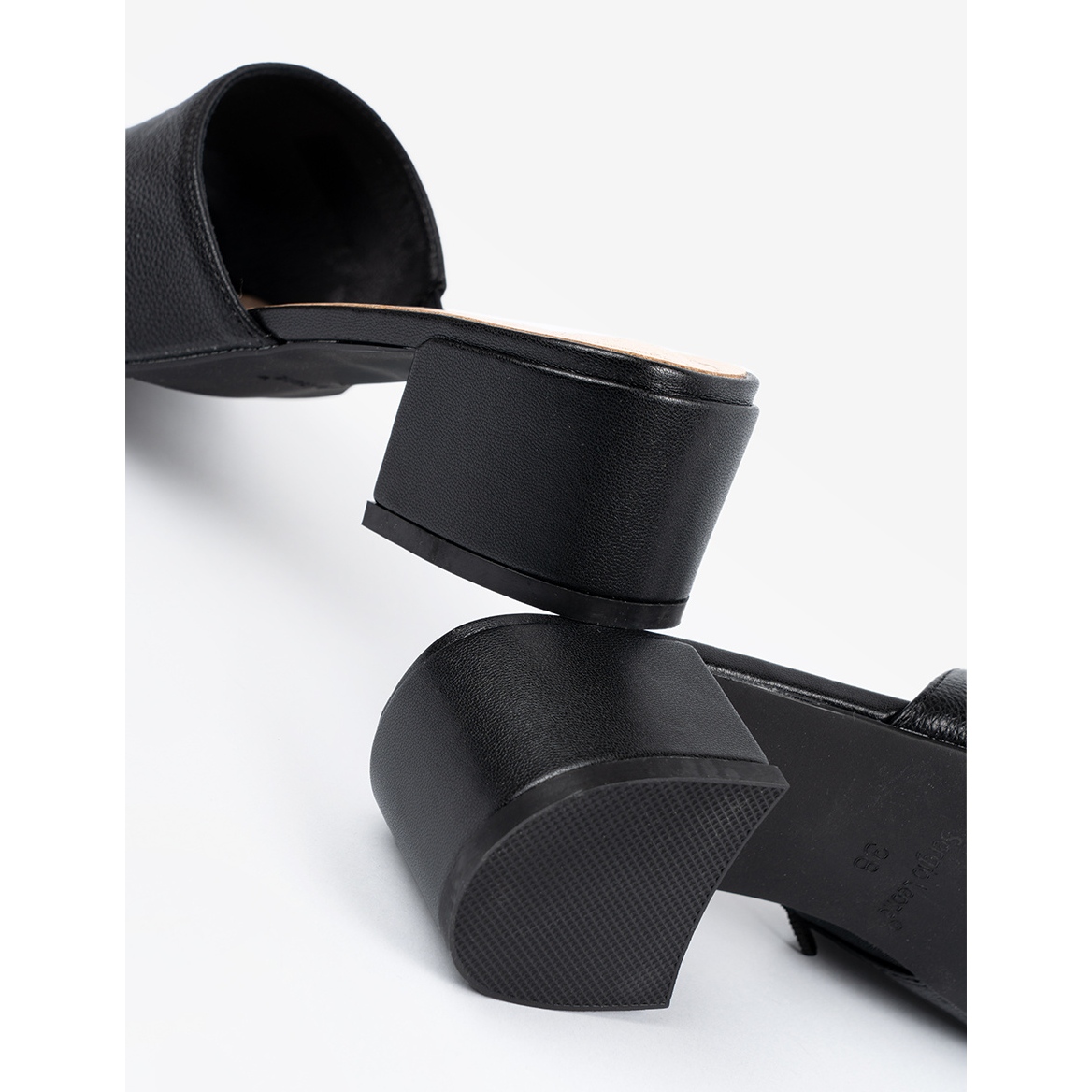 Niska peta s visinom od 5 cm idealna je za svakodnevne situacije - bilo tijekom rada, hodanja ili sastanaka s prijateljima. Zahvaljujući umetnutom dizajnu, njihovo je stavljanje brzo i ugodno, a plastični potplat pruža prianjanje i stabilnost, što ih čini praktičnim modelom za svaku priliku.