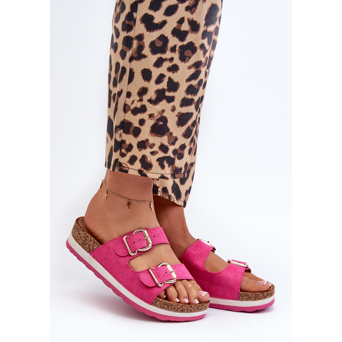 Detalji: Ženske japanke na platformu s kopčama Eco Suede Fuchsia Ursila ružičasta