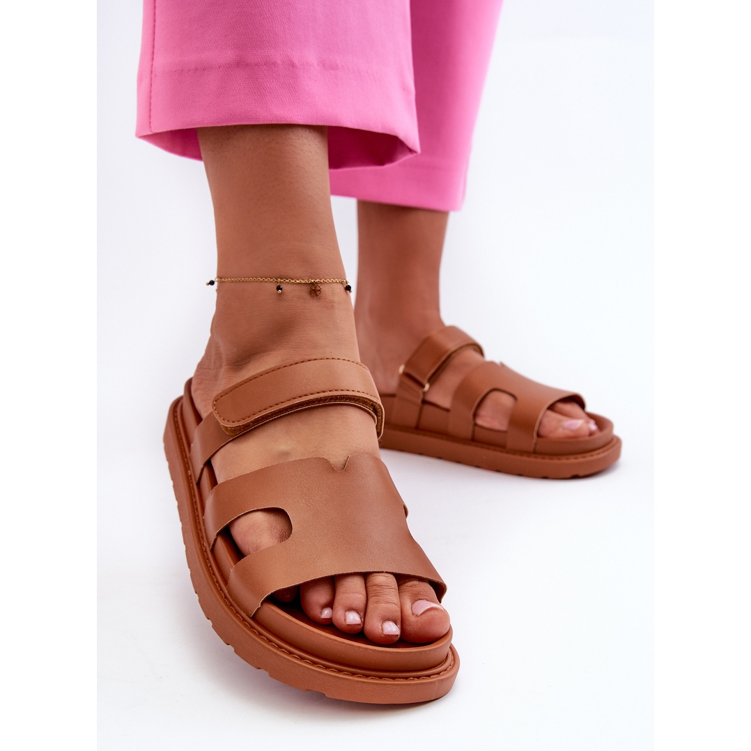 Inna marka Ženske japanke od eko kože s čičkom Camel Silaka smeđa