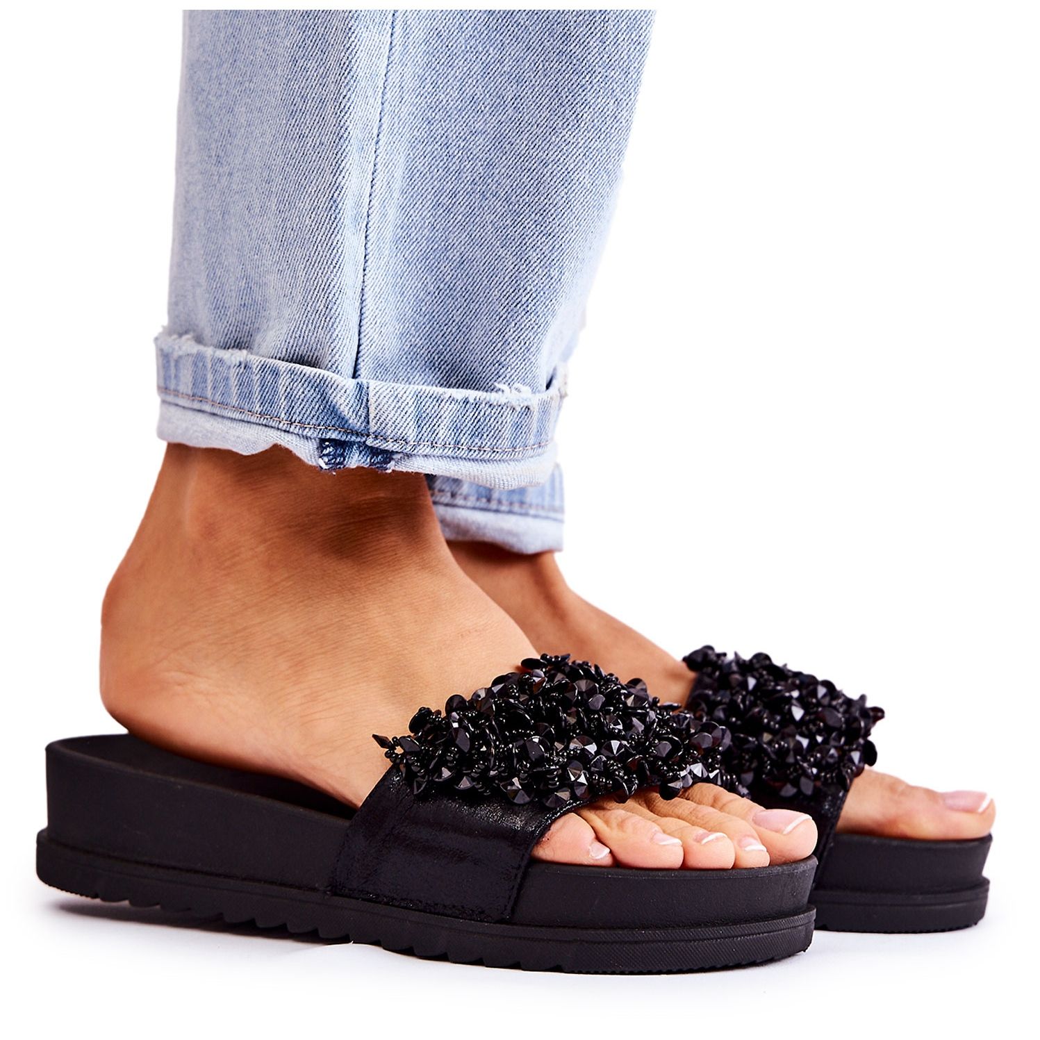 Pojedinosti: Ženske japanke s platformom i ukrasima, crne crna