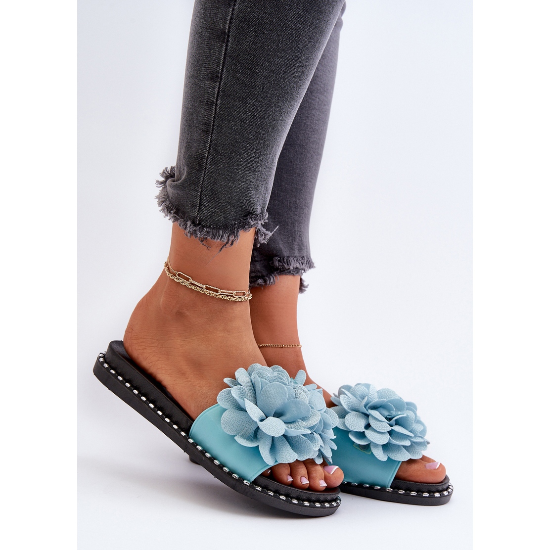 Detalji: Ženske japanke ukrašene cvijećem, plavi Cellanen plava