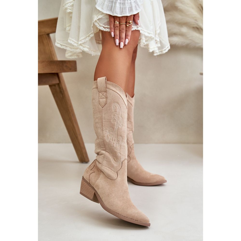Pojedinosti: Ženske kaubojske čizme na nisku petu od eko antilop kože, bež Ligelia