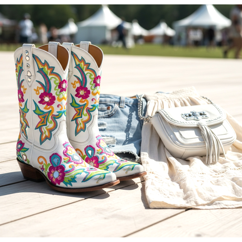 Ove sezone nisu moderne samo klasične smeđe i crne. Odaberite kaubojske čizme u bijeloj, srebrnoj boji ili sa šarenim vezom. Takve cipele postat će glavni element stajlinga, stoga neka ostatak outfita bude u prigušenim bojama. Bijele kaubojke hit su ljetnih zabava!