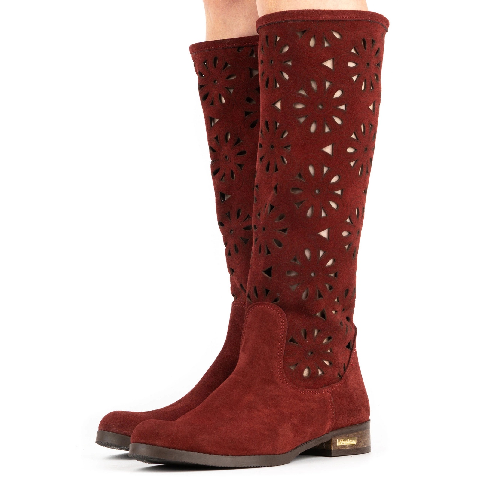 Olivier Olivier Ženske kestenjaste ažurne čizme crvena