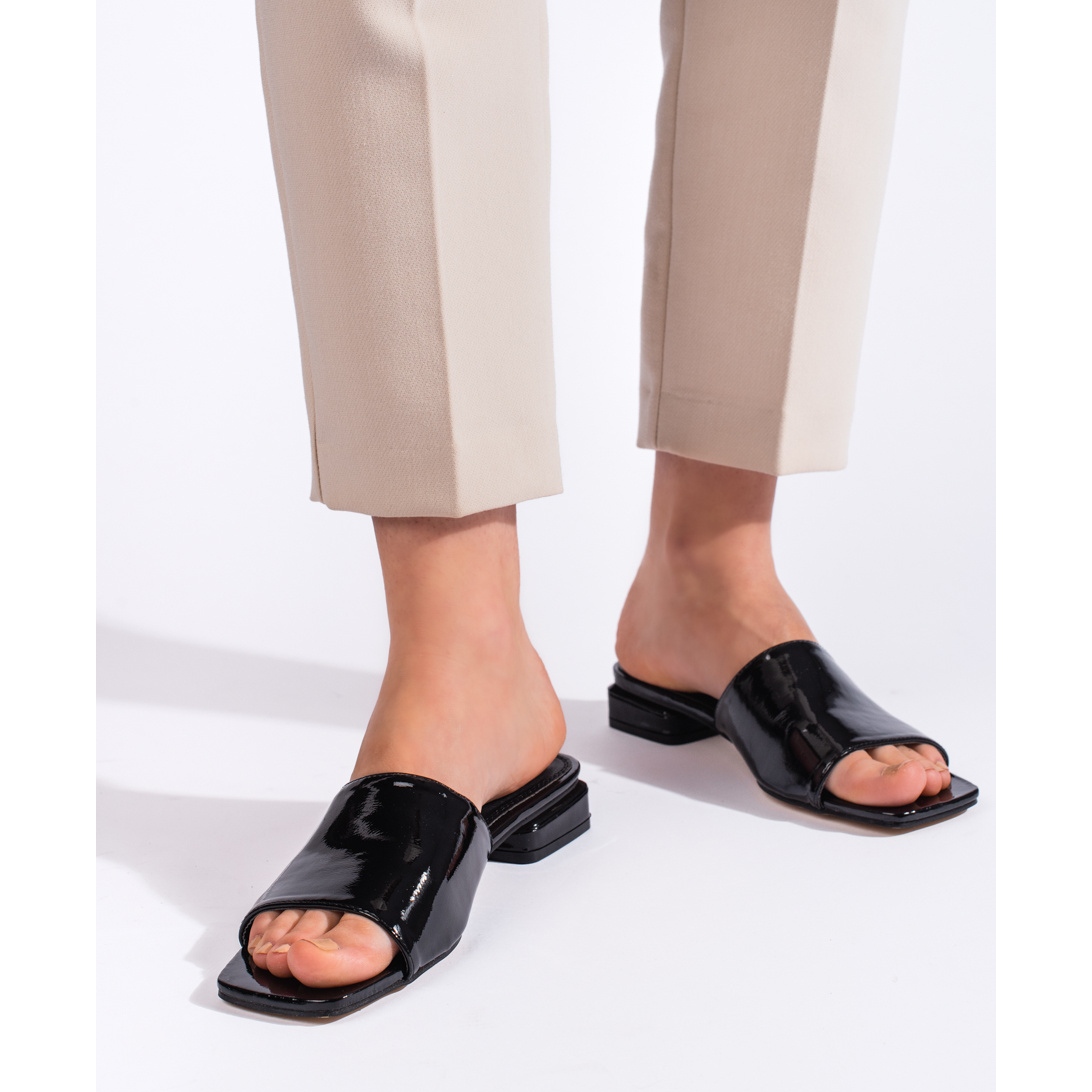 Otkrijte klasike udobnosti i stila ženskim visokim potpeticama iz Goodina. Ovaj model kombinira elegantan izgled i udobnost nošenja, što ga čini savršenim izborom svakodnevno. Izrađene od lakirane organske kože, crne flip flops izgledaju izuzetno elegantno i univerzalno - odgovaraju i ležernijim i elegantnijim stilizacijama.