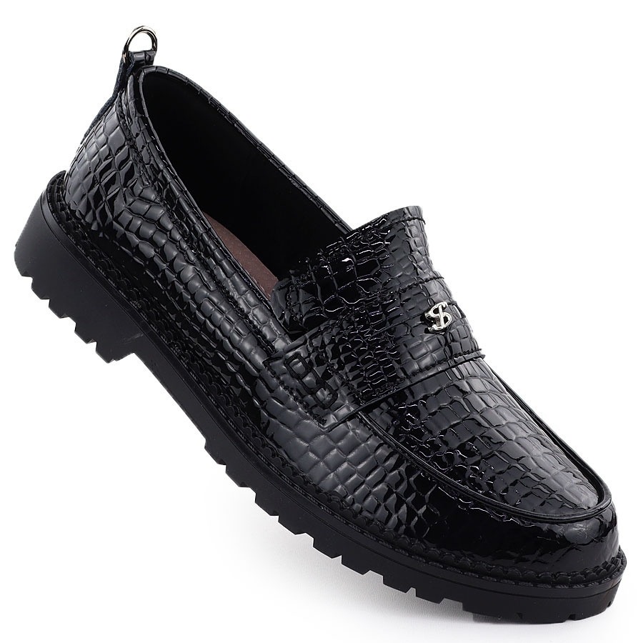 Detalji: Ženske kožne cipele Lakirani natikači Kroko Black Filippo DP7409