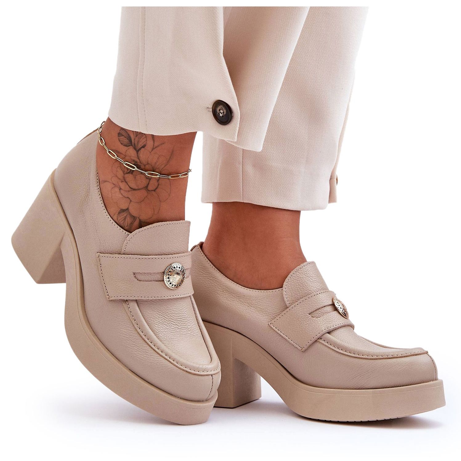 Detalji: Lemar Ženske kožne cipele na petu bež Dunadia
