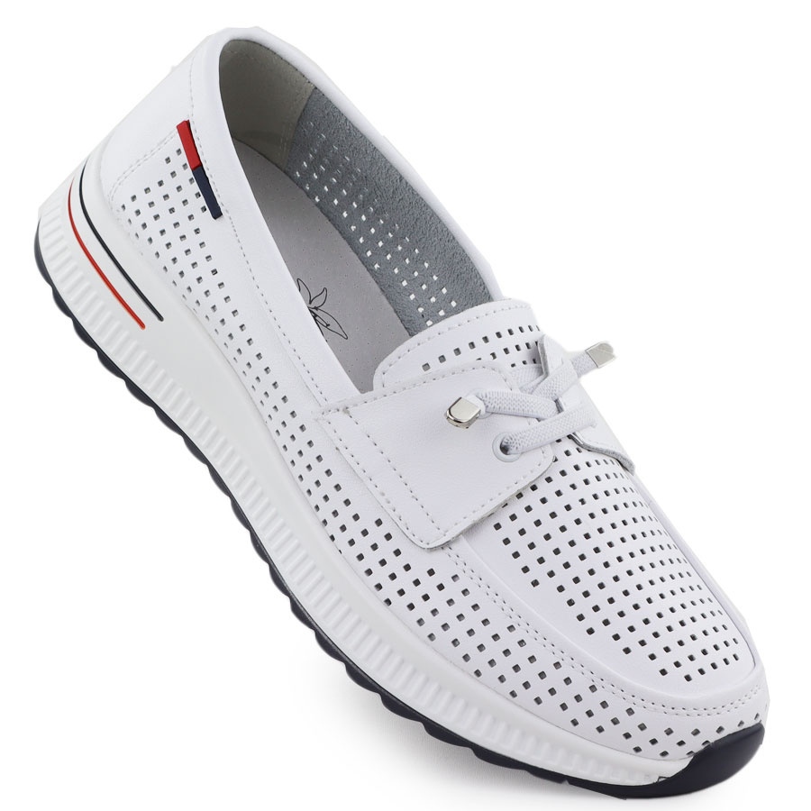 Evento Evento Ženske kožne cipele Openwork White događaj 8443 bijela