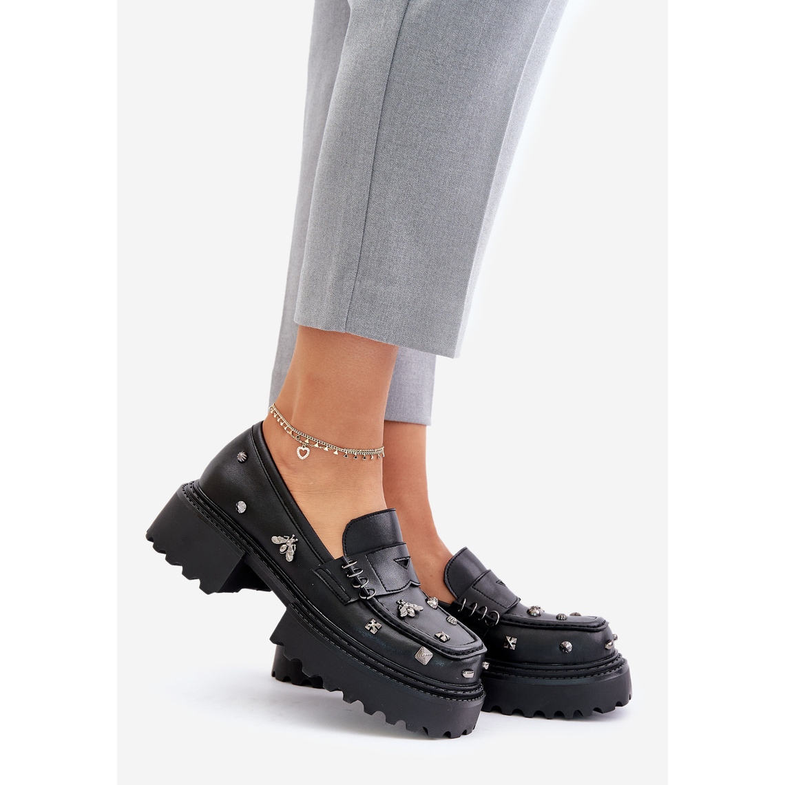 Postavljeni na stabilnoj platformi s visinom od 4,5 cm, dodaju suptilnu figuru, a istovremeno ne opterećuju stopala. Model se razlikuje po elegantnim detaljima u obliku rhinestones koji upadaju u oči i naglašavaju njihov moderni karakter. Idealni su i za povremene stililizacije i za formalnije prigode.