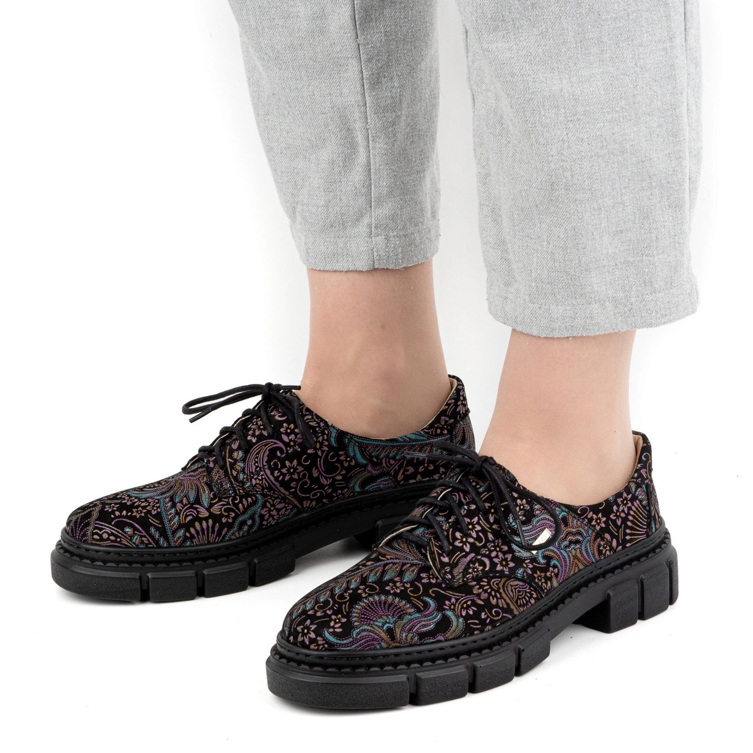 Olivier Ženske kožne cipele sa debelim đonom, cvjetići 1134, tirkiz višebojan