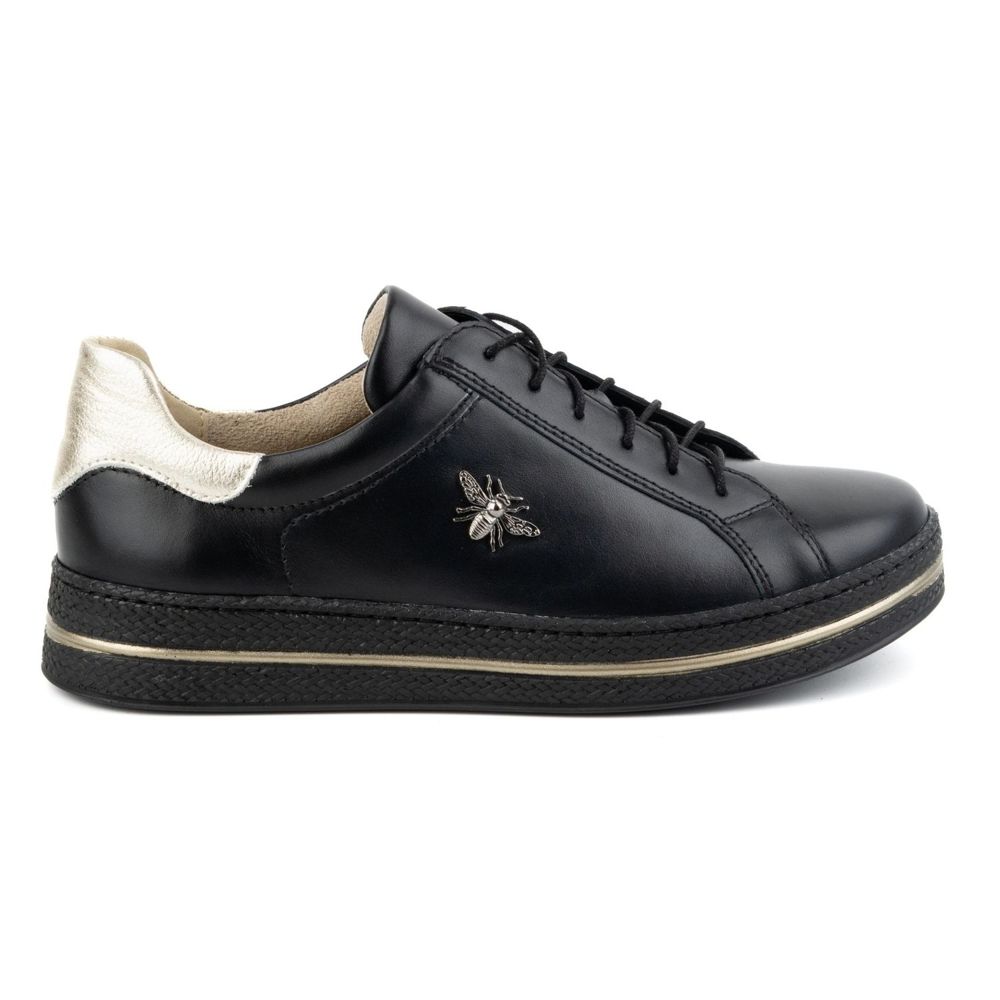 Olivier ženske cipele Kožne tenisice Style 1190 u crnoj boji odličan je izbor za svaku modernu ženu koja želi kombinirati udobnost s elegantnim stilom. Ove jedinstvene tenisice razlikuju se suptilnim, osjetljivim sjajem zlatnog flastera sa strane i zlatnom petom, što im daje pomalo luksuzan lik.