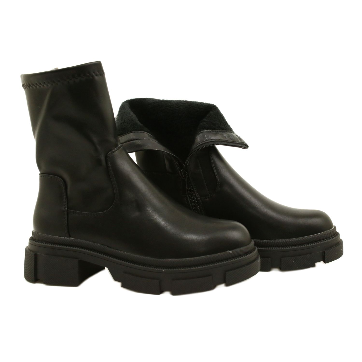 Elegantne i praktične čizme M. Daszyński MR2127-20 Kombiniraju moderan, masivan rez s udobnošću nošenja. Izrađena od visokokvalitetne ekološke kože, u gornjem dijelu gornjeg dijela lateks, što omogućava bolje uklapanje u tele. Unutrašnjost je izolirana osjetljivim, gustim krznom, zahvaljujući koje će cipele raditi na hladnijim danima. Stabilan, deblji potplat i ravna peta (visina 5 cm) pružaju udobnost tijekom svakodnevne uporabe.