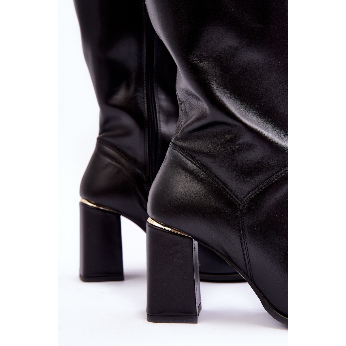 Elegantne, klasične čizme koljena izrađene od visokokvalitetne prirodne kože u mat, dubokoj crnoj boji. Model je postavljen na stabilnoj barskoj peti s ukrasnim, zrcalnim elementom - suptilnim detaljima koji dodaje karakter. Nosovi u Spitzu optički su mršavi lik, a ukočena peta osigurava bolju uklapanje i udobnost hodanja.