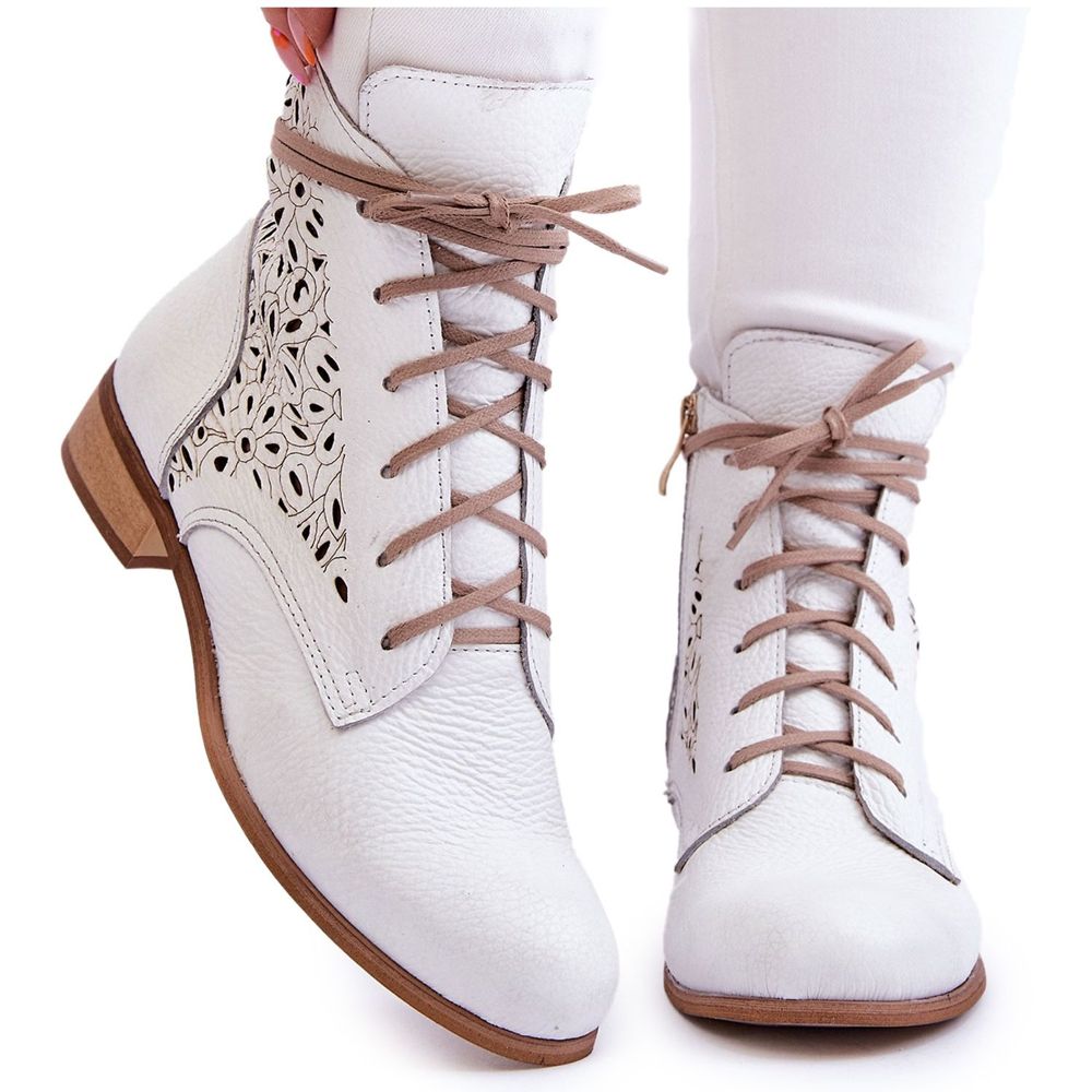 Elegantne i udobne čizme izrađene od visokokvalitetne prirodne kože - savršene na dnevnoj osnovi i za elegantnije setove. Suptilni, otvoreni uzorak u obliku "graška" dodaje lakoću i originalni karakter, a klasična bijela boja olakšava kombiniranje cipela s mnogim stilovima.