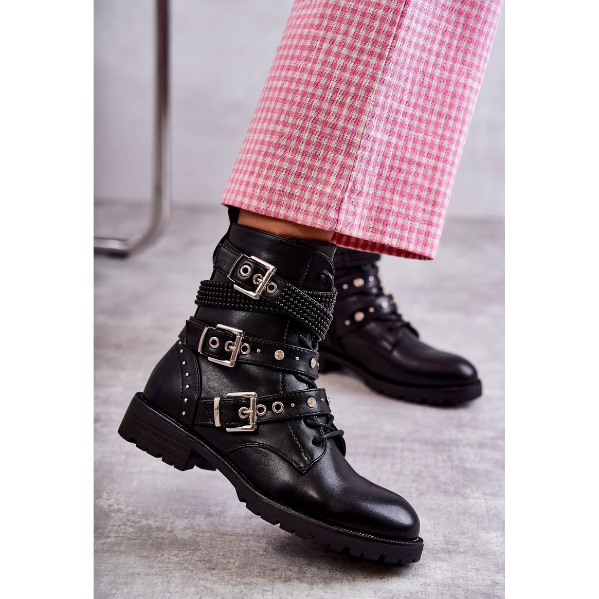 **PG1 ženske kožne gležnjače s ukrasnim remenima Black Russo**