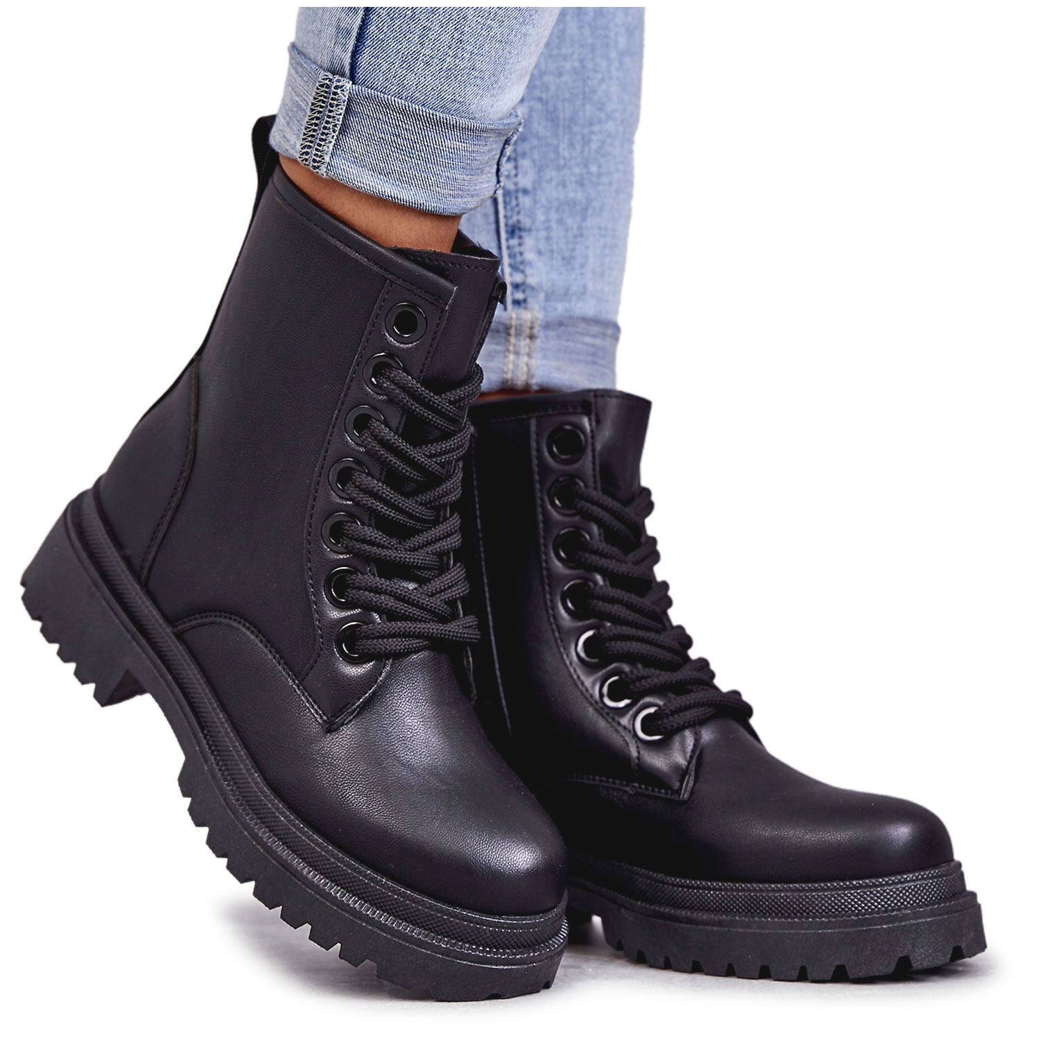 Pojedinosti: PE1 Ženske kožne čizme Workers Black Denila crna