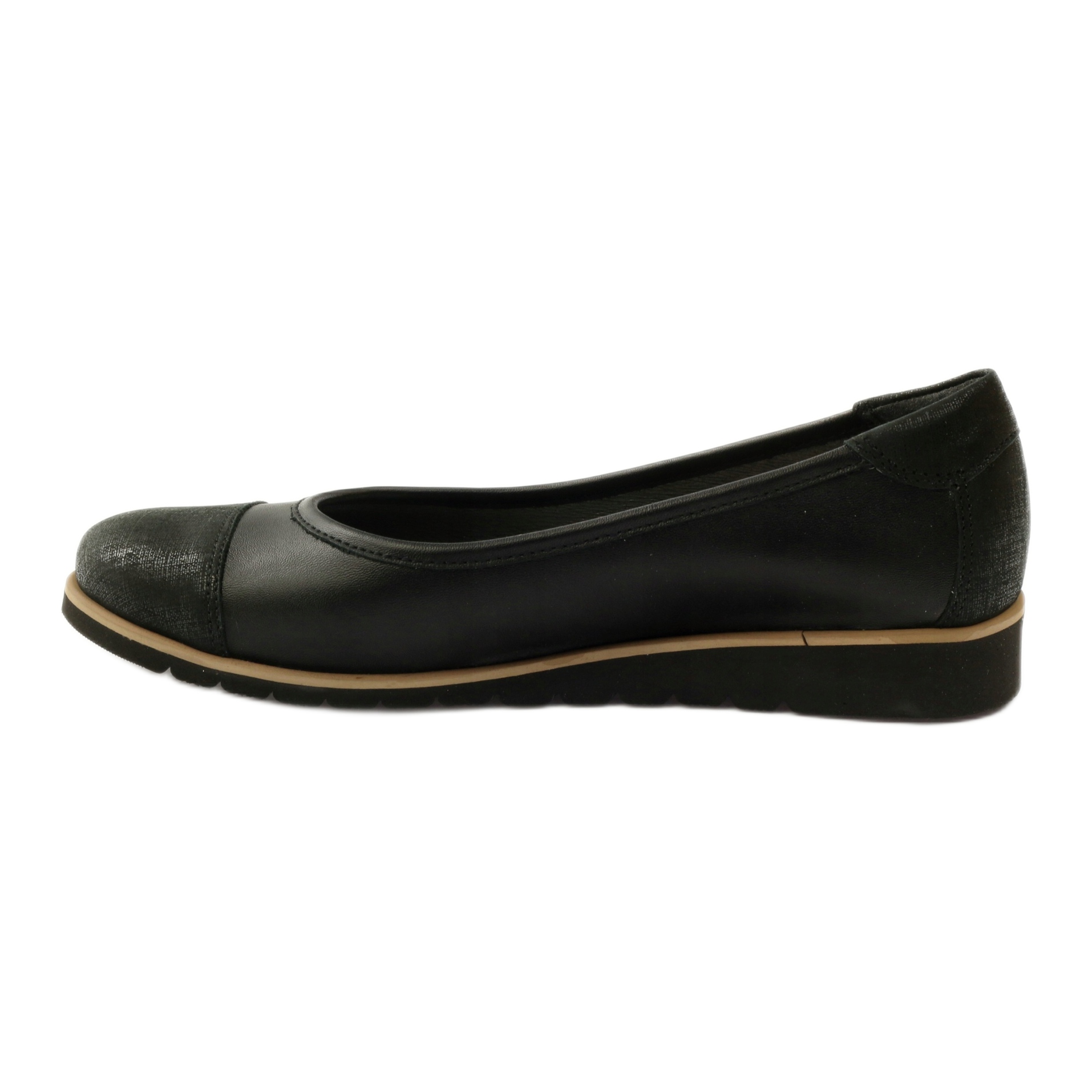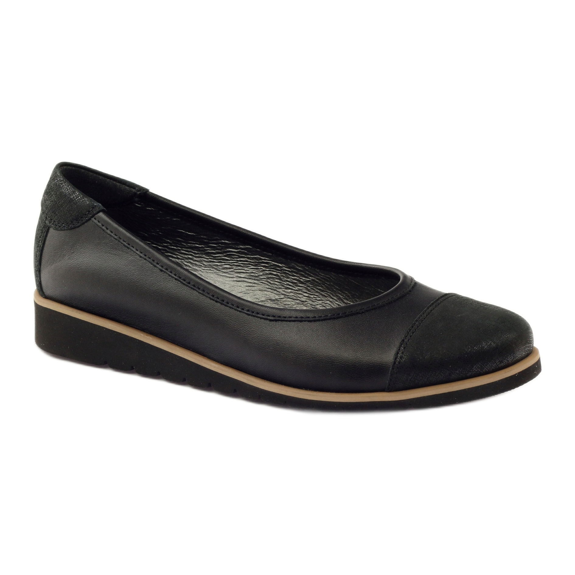 Elegantne, univerzalne mokasine poljske marke Angello, model 1325. U potpunosti izrađene od prirodne zrnaste kože u klasičnoj crnoj boji, na laganom i fleksibilnom potplatu nove generacije s malom wedgeom (2,5 cm). Unutrašnjost je obložena kožnim umetkom koji apsorbira udarce, osiguravajući veću udobnost nošenja.