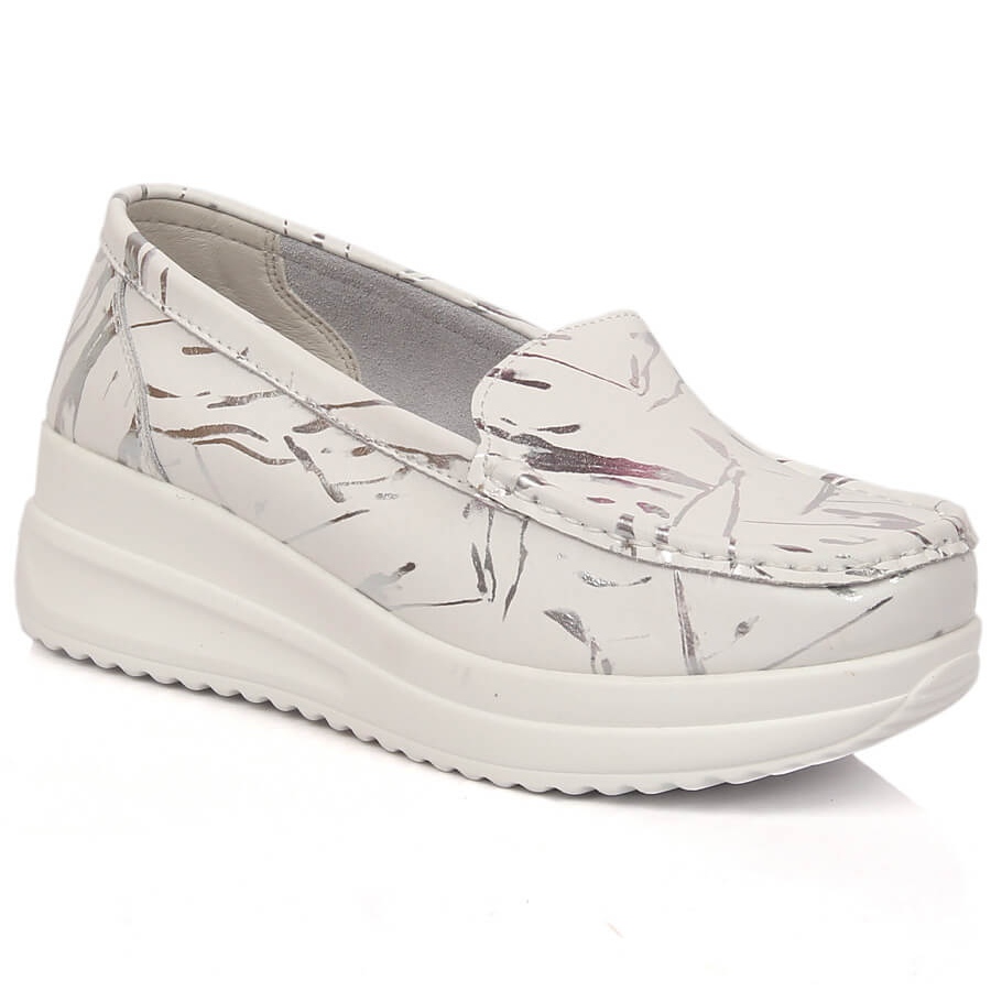 Pojedinosti: Ženske kožne mokasine na platformu bijele Artiker 50C1886 bijela
