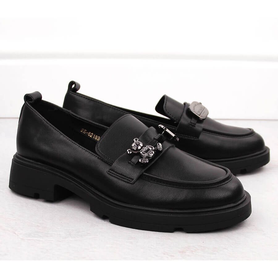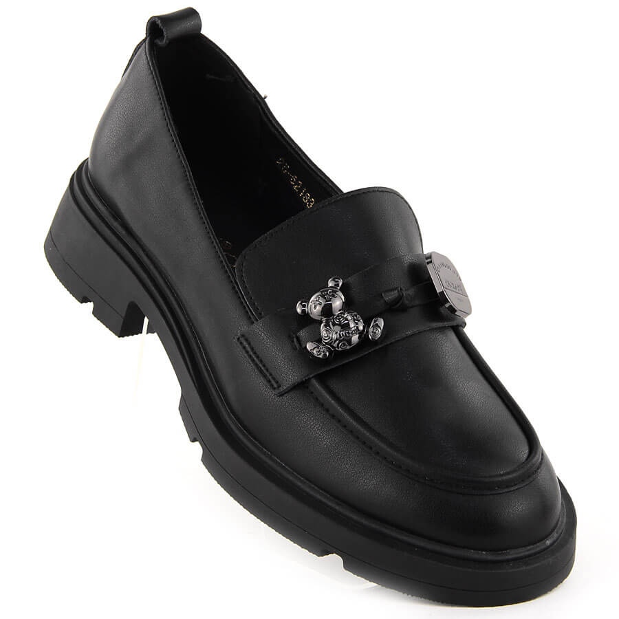 Ženske kožne mokasine s ukrasom, crne Vinceza 62183 crna