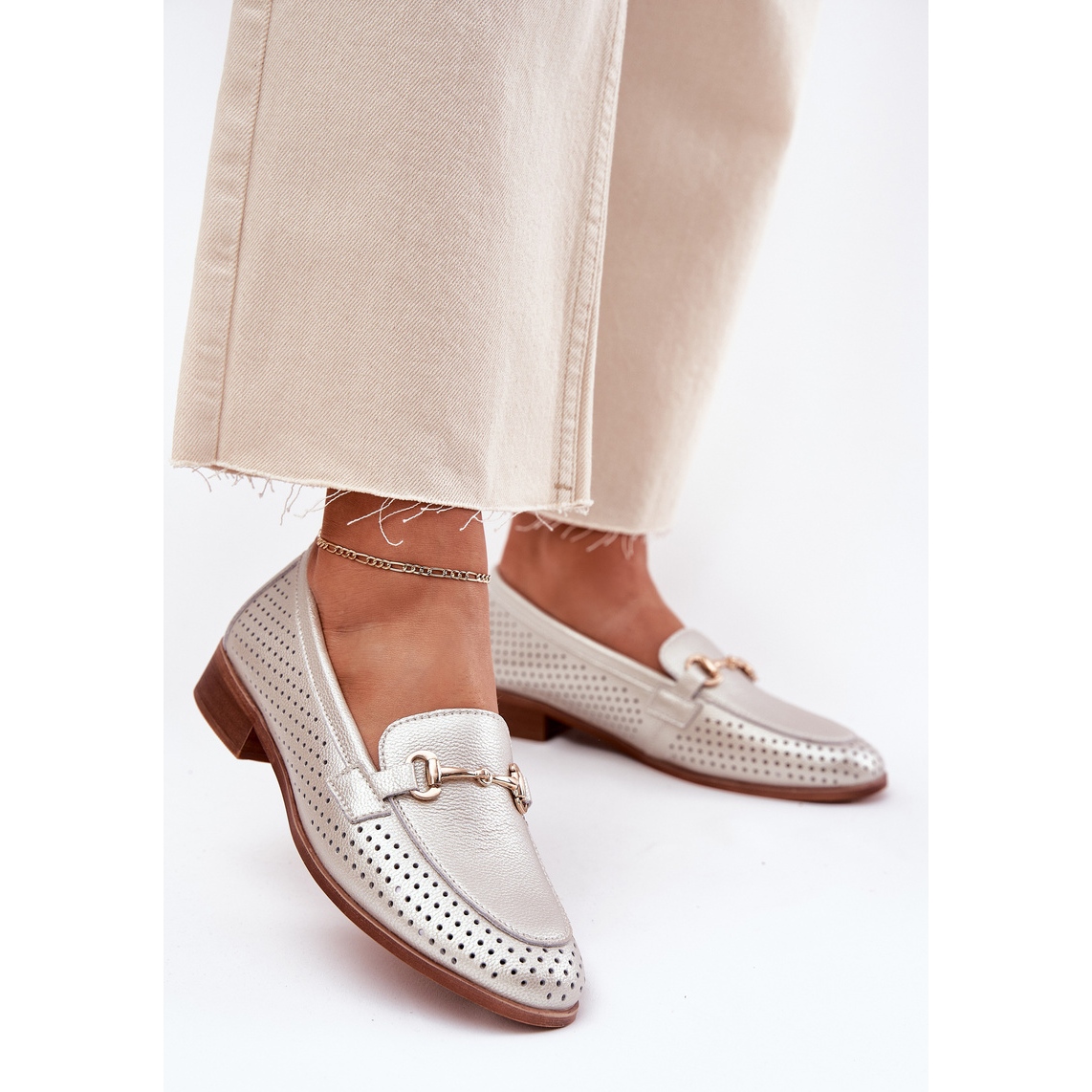 Moccasins su ugrađeni u ravnu petu s visinom od 3 cm, što ih čini idealnim izborom svakodnevno, kao i u posebnim prilikama. Njihovi zaobljeni nosovi dodaju suptilnosti, a meka kožna uložak pruža osjećaj luksuza na svakom koraku. Dodatna prednost je dekorativni element na prednjem dijelu cipele, koji upada u oko i cijeloj stilizaciji daje elegantan karakter.