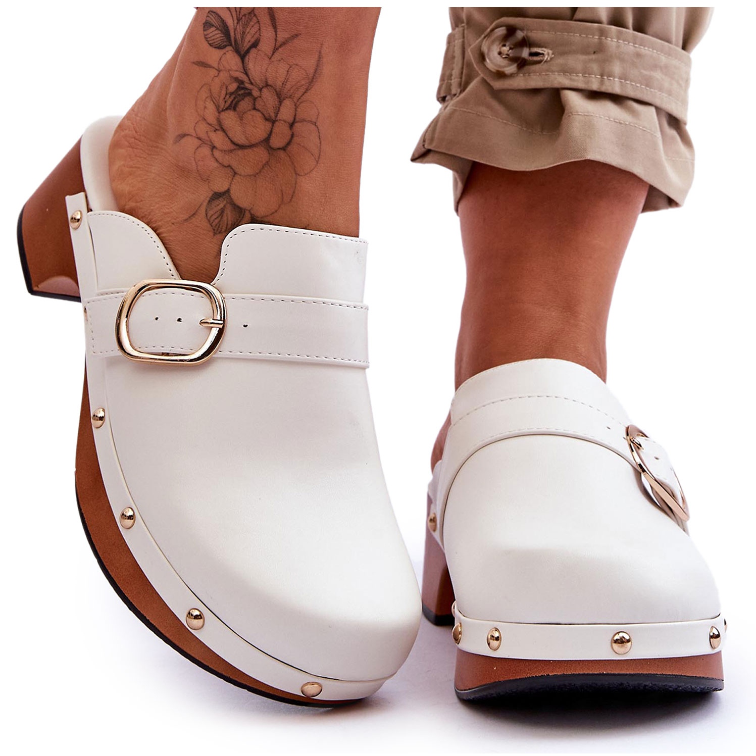 Pojedinosti: FI1 Ženske kožne papuče Klompe Bijele Fanett bijela