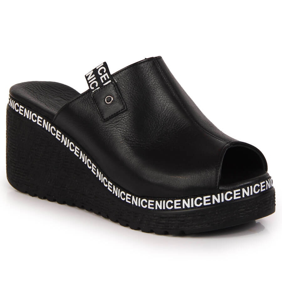 Pojedinosti: Ženske kožne papuče na crnom Artiker klin crna
