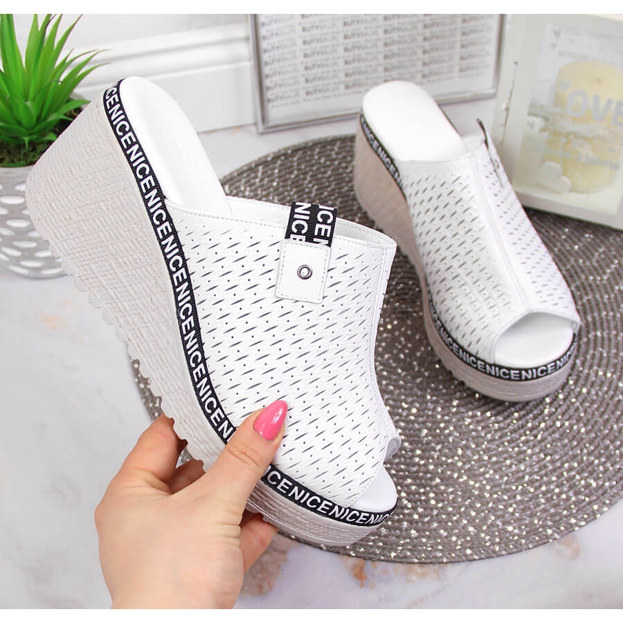 Pojedinosti: Ženske kožne papuče na klin bijeli Artiker bijela