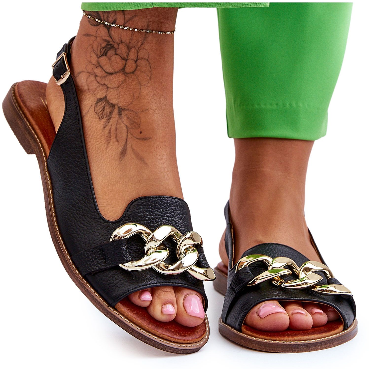 Ženske kožne sandale Lewski Shoes 3230 Black Peas crna