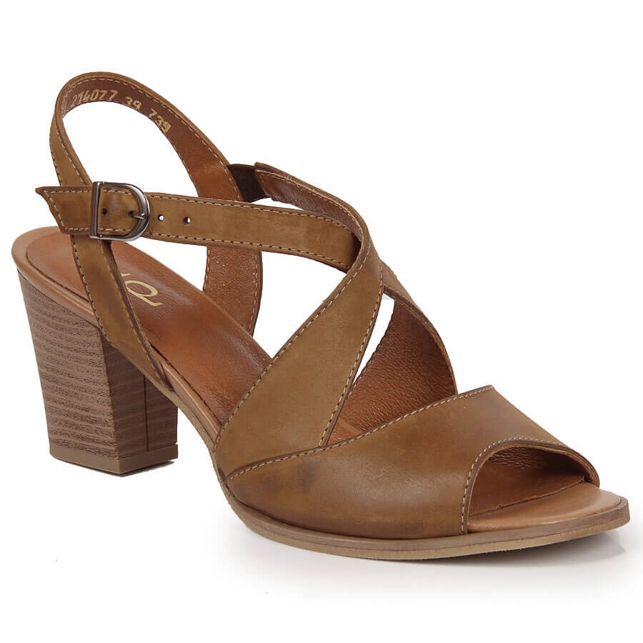 Detalji: Ženske kožne sandale na smeđi Dolce Pietro stup smeđa