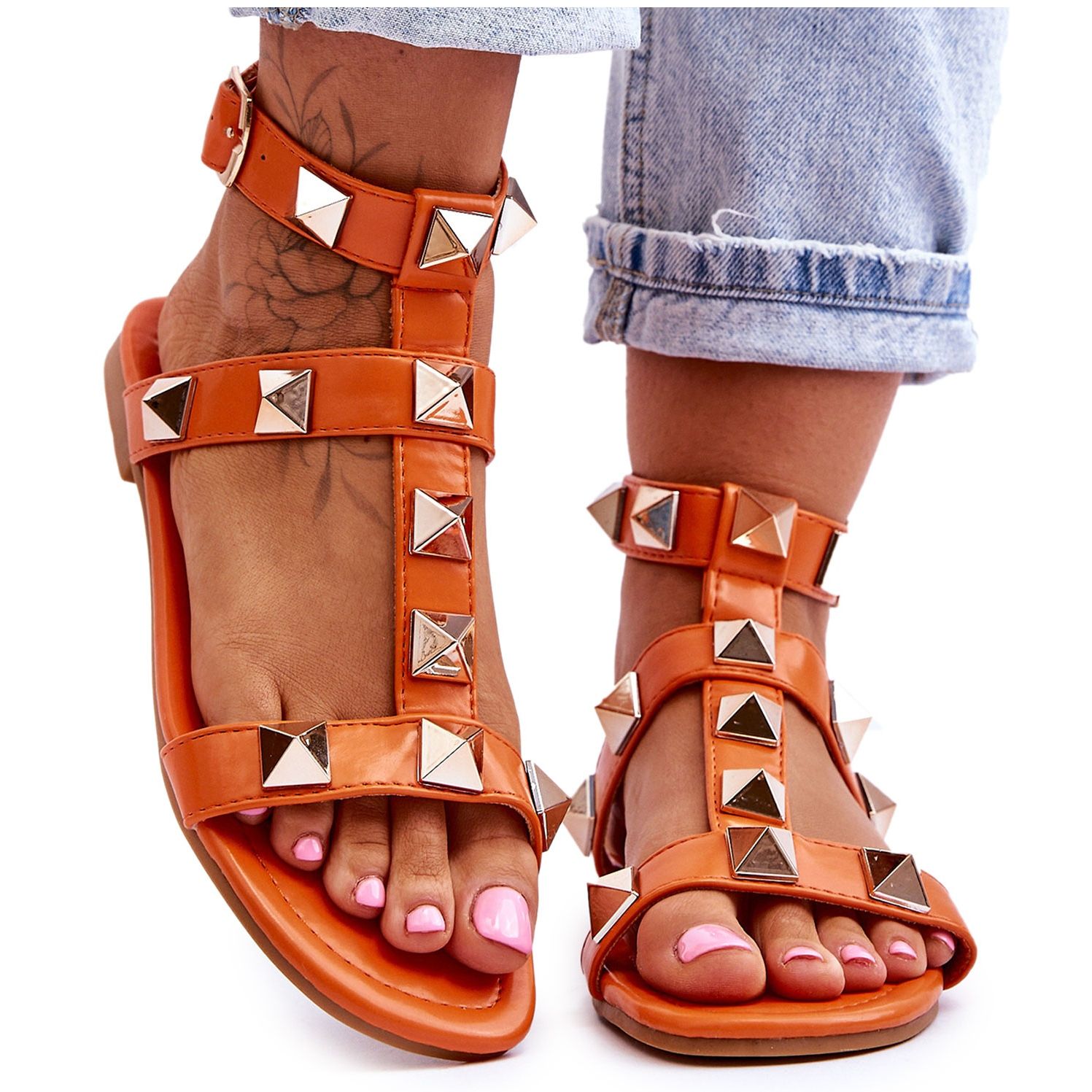 Ženske kožne sandale s velikim nitnama Narančasti Mishigan narančasta