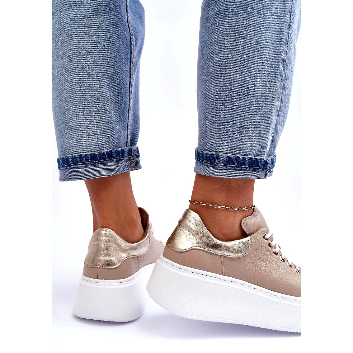 Detalji: Lemar Ženske kožne sportske cipele na platformi bež