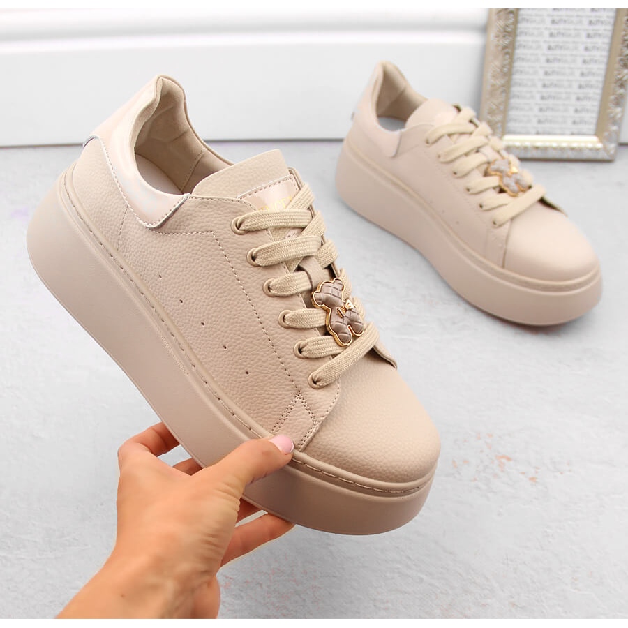 Pojedinosti: Ženske kožne sportske cipele na platformu s medvjedićem, bež Vinceza 66641
