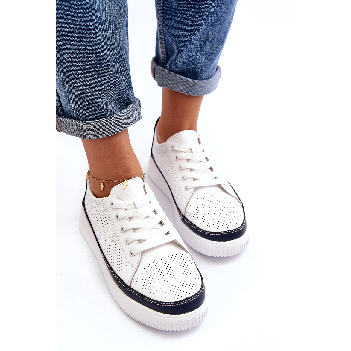 Predstavljamo ženske kožne sportske cipele iz poznate marke Sergio Leone u elegantnim, bijelim i mornarsko plavim bojama. Savršene za aktivne žene, ove sportske cipele kombiniraju stil i udobnost, savršeno djeluju tijekom svakodnevnih aktivnosti.