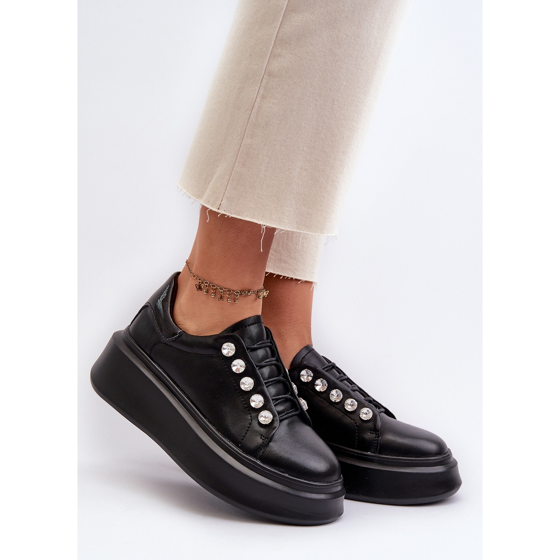 Postavljene na stabilnoj platformi od 4,5 centimetara, ove tenisice daju sigurnosnu sigurnost bez odustajanja od modernog izgleda. Klasična crna boja čini ih savršenim dodatkom svakoj stilizaciji - od svakodnevne do elegantnije. Pričvršćivanje u obliku čipki omogućuje savršeno uklapanje u stopalo.