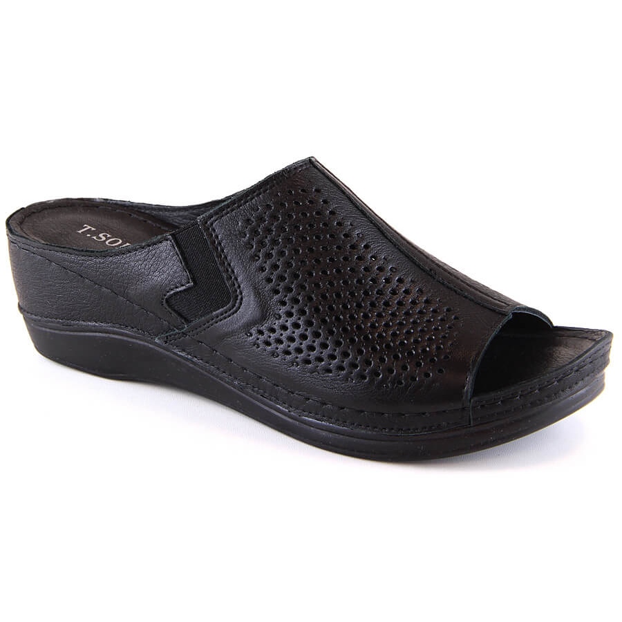 Ženske kožne wedge sandale crne s gumicom T.Sokolski L22-518 crna