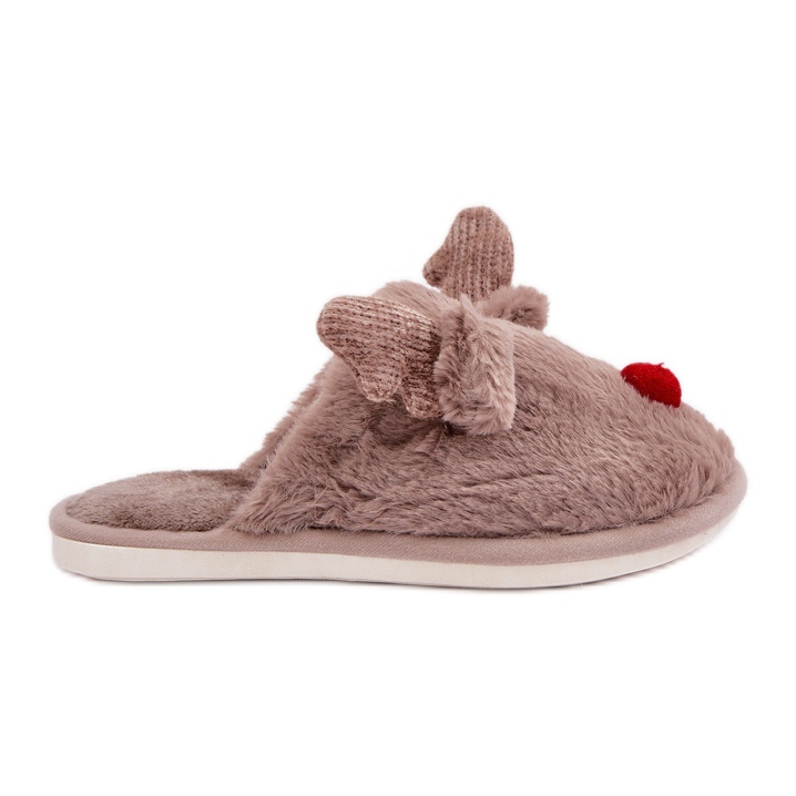 Inna marka Ženske krznene papuče s uzorkom sobova, tamno bež
