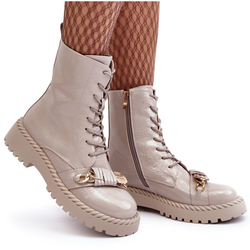S.Barski S.Barski Ženske lakirane čizme Radnike s ukrasom D&A MR870-67 Light bež