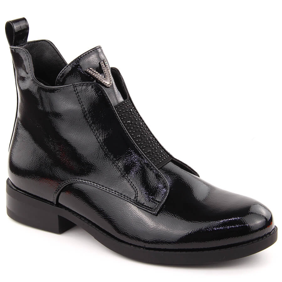 Ženske lakirane gležnjače s crnim cirkonima S.Barski crna