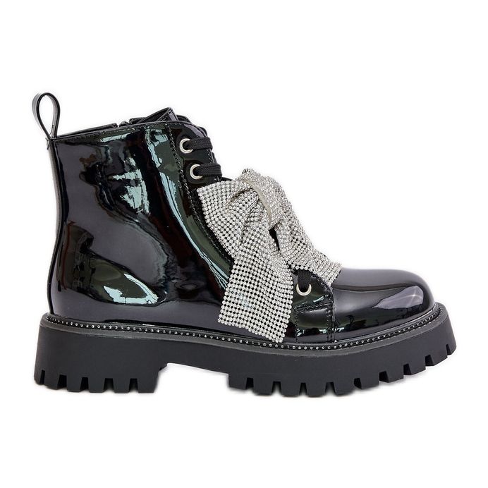 Ženske lakirane gležnjače s mašnom, Black Ocenttia crna