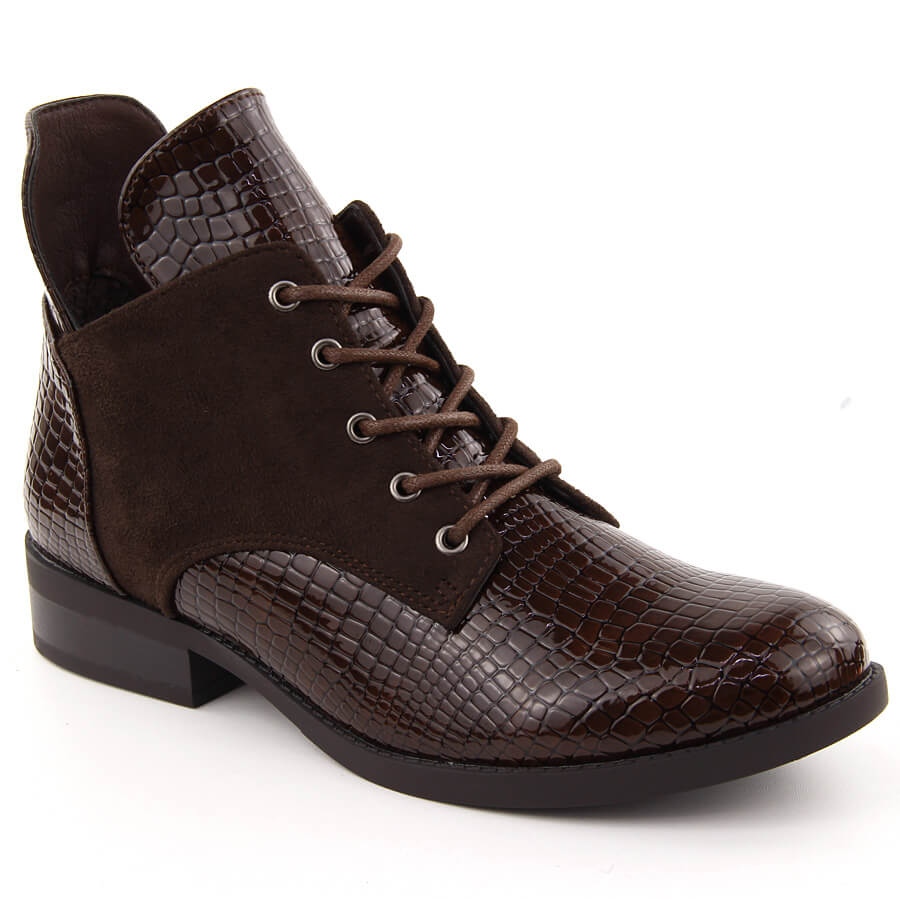 Detalji: Ženske lakirane gležnjače, smeđe, Vinceza 16477 smeđa