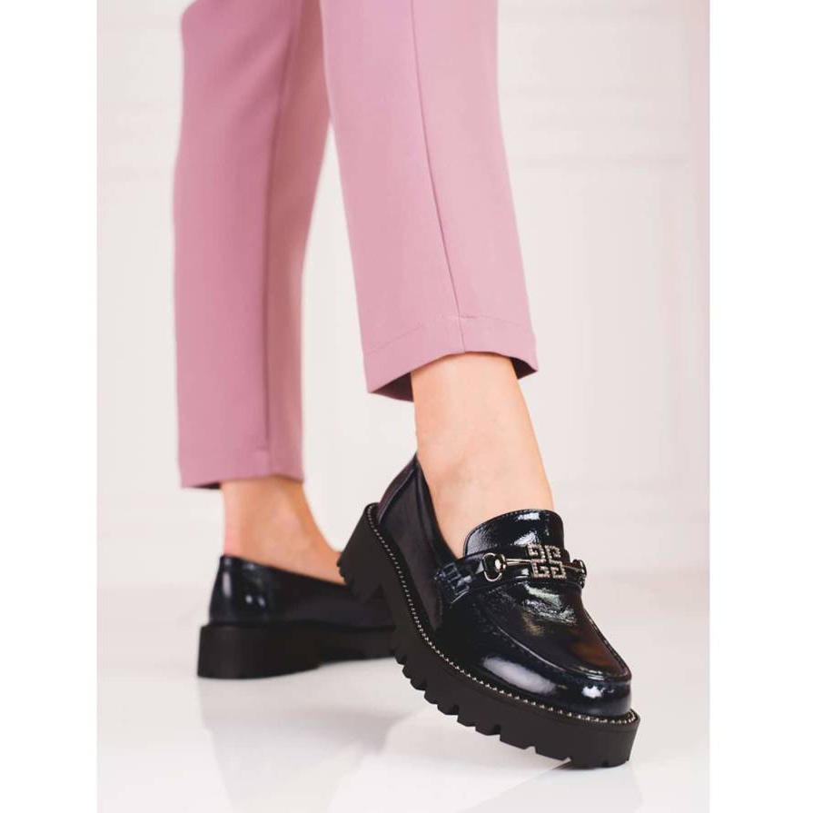 Pojedinosti: Ženske lakirane mokasine na debelom đonu Shelovet, tamnoplave tamnoplava
