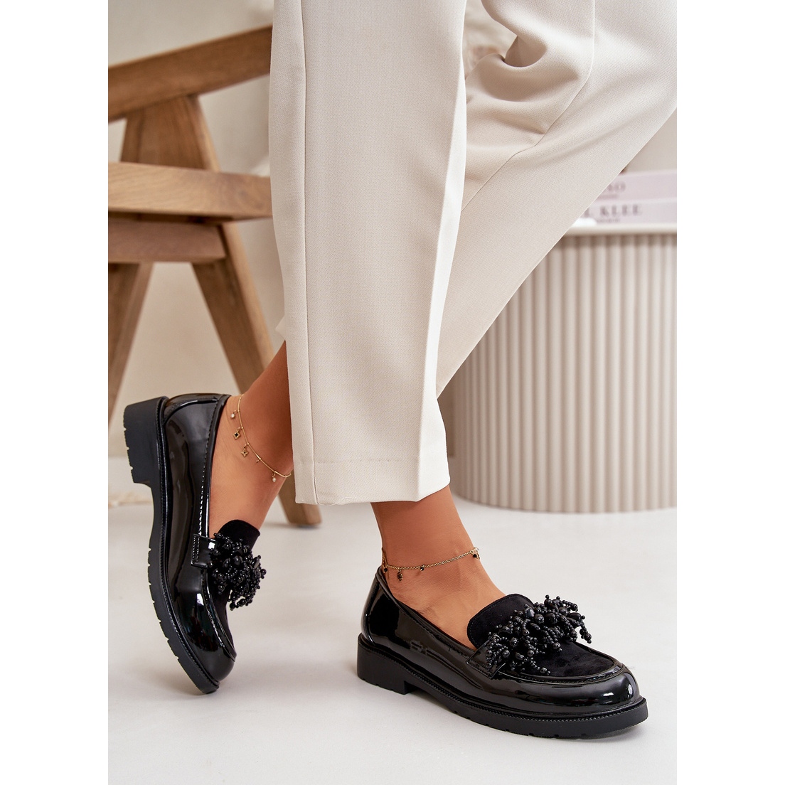 Suptilni ukras postavljen na prednji dio daje im jedinstveni karakter, što ih čini ne samo stilskim, već i sofisticiranim elementom svake stilizacije. Black Loafers S. Barski savršeno se miješaju s trapericama, suknjama ili haljinama, postajući univerzalni dodatak garderobi svake moderne žene.
