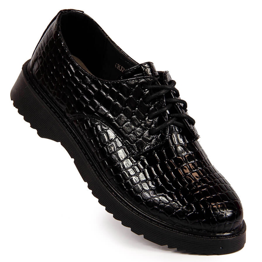 Njihov zadivljujući lakirani gornji dio s kroko uzorkom privlači poglede i dodaje sjaj svakoj odjeći. Crne, elegantne nijanse, cipele su izrađene od visokokvalitetnih materijala - prirodna koža u ulošku osigurava udobnost nošenja, a ekološka podstava osigurava pravilnu cirkulaciju zraka.
